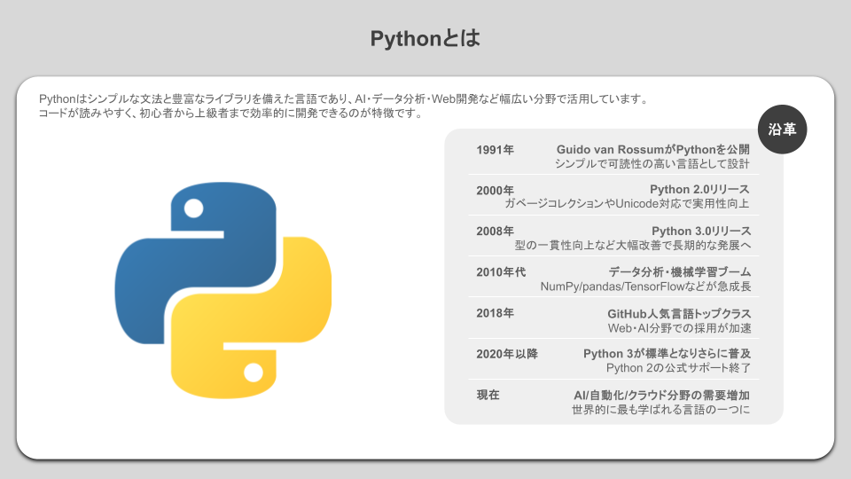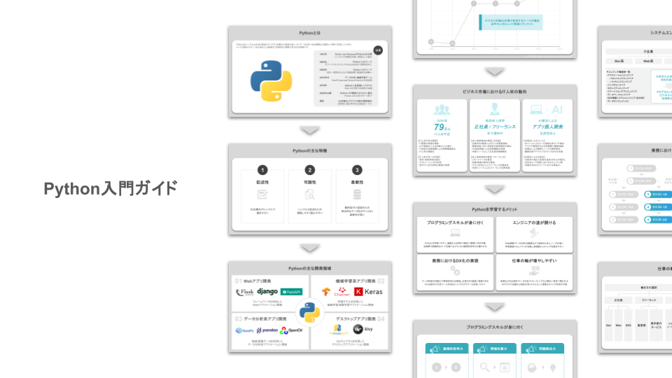 Python学習に役立つ基礎知識ガイドを始め、アプリ開発時の基礎学習教材を用意しています。